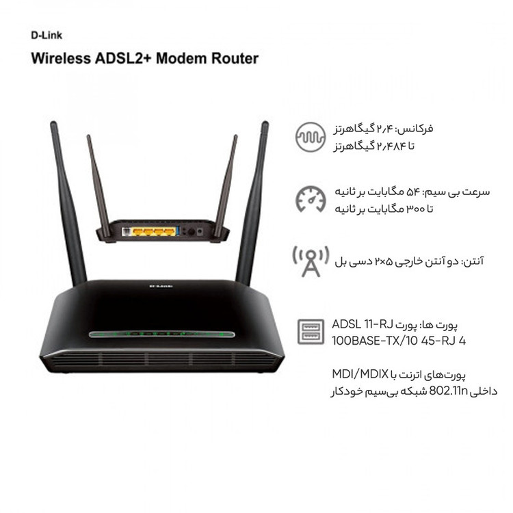 مودم دی لینک 2750 که در بازار شبکه با نام Wireless N 300 ADSL2+ Modem RouterDSL-2750U شناخته میشود را مورد بررسی قراردهیم. مودم دی لینک 2750 یک مودم همه کاره و با کارایی بالا برای خانه ها و دفترهای کوچک است. دارای قابلیت +ADSL2 / 2 و پشتیبانی از سرعت بارگیری حداکثر تا 24 مگابیت بر ثانیه ، فایروال ، کیفیت خدمات (QoS) ، دارای 4 پورت fast LAN که یکی از آنها پورت WAN میباشد، همینطور از استاندارد بی سیم 802.11n نیز حمایت میکند، این روتر کلیه کارکردهایی را که یک خانه یا اداره کوچک برای ایجاد یک لینک امن و پر سرعت به اینترنت نیاز دارد را بدون دغدغه و نگرانی فراهم می کند، همچنین قیمت مودم دی لینک 2750 کاملا رقابتی با دیگر مدل های مشابه می باشد. مودم فوق با دستگاههای بیسیمی که دارای استانداردهای 802.11g و 802.11b هستند کاملا منطبق و سازگار است؛ ولی این دستگاهها نسبت به دستگاههایی که دارای استاندارد 802.11n هستند سرعت انتقال پایینتری دارند. دی لینک 2750U دارای چهار پورت شبکه (RJ-45) است و یک پورت RJ-11 یا همان تلفن میباشد..تیم فنی مهندسی برقچی از زمان خرید تا عرضه محصول با شما همراه بوده و خدمات مشاوره ای لازم برای یک انتخاب هوشمندانه شایسته نیاز کاربر را فراهم میسازد