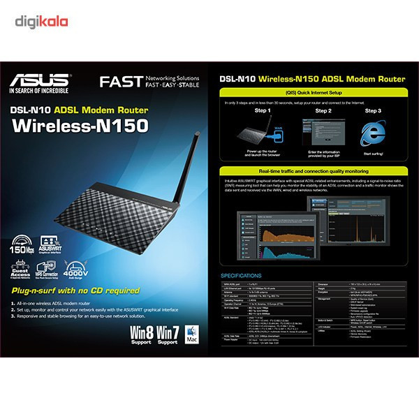 مودم روتر ADSL بیسیم N150 ایسوس مدل DSL-N10E
