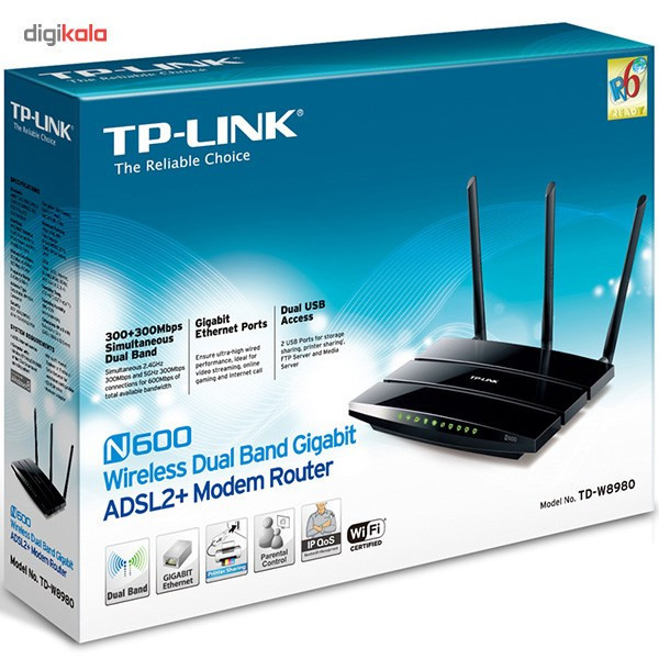 مودم-روتر +ADSL2 بیسیم و دوباند تی پی-لینک مدل TD-W8980_V1