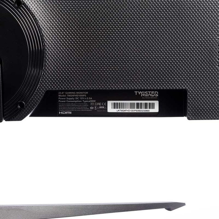 مانیتور Twisted Minds TM24FHD100IPS از طراحی ساده در قسمت پنل جلو و طراحی دو تکه در قسمت پشتی بهره میبرد. البته اگر به پایه نگاه کنیم کمی اوضاع هیجان انگیزتر است. لوگوی تویستد مایندز هم به شکل بزرگ در قسمت پشتی حک شده و در زیر آن بریدگیای دایرهای شکل دو قسمت پایه و بدنه را به هم متصل کرده است. صفحه نمایش هم به صورت تخت بوده و خبری از خمیدگی در آن نیست.