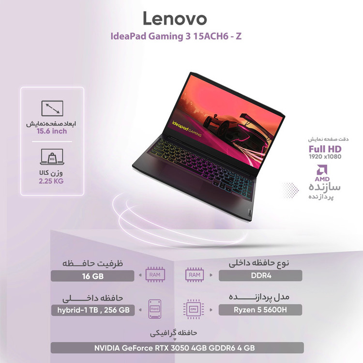 مشخصات حافظه داخلی : یک ترابایت حافظهی HDD و 256 گیگابایت حافظهی SSD M.2 2242 PCIe 3.0x4 NVMe