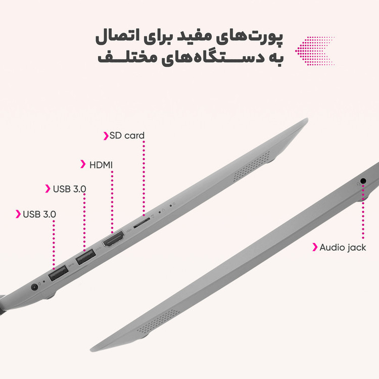 درگاههای ارتباطی : شیار کارت حافظه , جک 3.5 میلیمتری صدا , Wi-Fi , HDMI , Bluetooth , USB