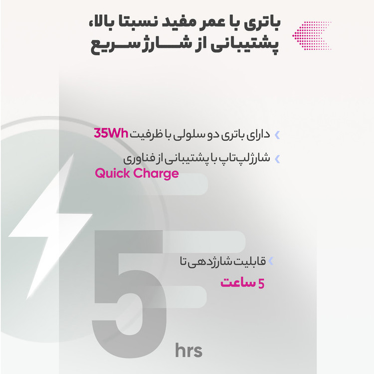 توضیحات باتری : با ظرفیت 35 وات ساعت