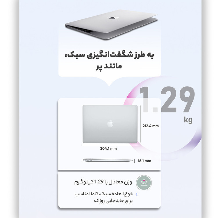 مشخصات تاچ پد : مجهز به تکنولوژی Force Touch با پشتیبانی کامل از انواع فرمانهای چند لمسی تا فرمانهای سه و چهارانگشتی