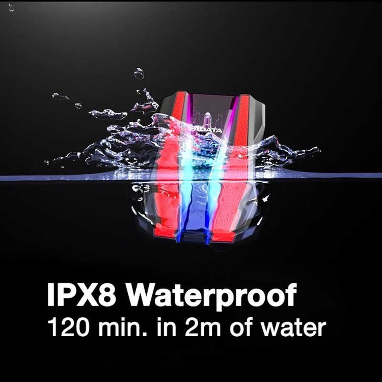 مطابق استانداردهای نظامی بین المللی از فاصله 1.22 سانتی متر به زمین پرتاب شود، سالم میماند پس فریب ظرافت و رنگهای RGB هارد را نخورید.هارد خارجی HD770G دارای ساختار سه لایهای محکم شامل یک محفظه سیلیکونی ضربهگیر، بافر مستحکم و یک پایه بالشتکی برای هارددیسک است. HD770G حداکثر محافظت در برابر گرد و غبار و آب را ارائه میدهد که فراتر از بالاترین سطح استاندارد IP68 است. به طور خاص، HDD تا حدی ضد آب است که می تواند 120 دقیقه در عمق 2 متری آب غوطه ور شود. این هارد به راحتی در برابر ضربه و افتادن از دست سالم میماند. اما فراموش نکنید که در محافظت یکپارچه درگاه اتصال ببندید.