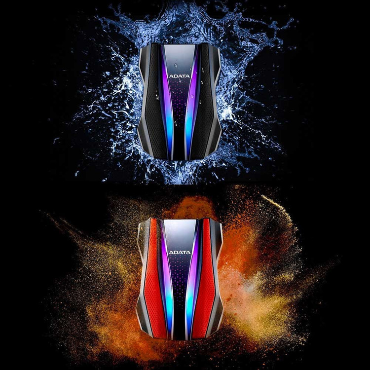 مطابق استانداردهای نظامی بین المللی از فاصله 1.22 سانتی متر به زمین پرتاب شود، سالم میماند پس فریب ظرافت و رنگهای RGB هارد را نخورید.هارد خارجی HD770G دارای ساختار سه لایهای محکم شامل یک محفظه سیلیکونی ضربهگیر، بافر مستحکم و یک پایه بالشتکی برای هارددیسک است. HD770G حداکثر محافظت در برابر گرد و غبار و آب را ارائه میدهد که فراتر از بالاترین سطح استاندارد IP68 است. به طور خاص، HDD تا حدی ضد آب است که می تواند 120 دقیقه در عمق 2 متری آب غوطه ور شود. این هارد به راحتی در برابر ضربه و افتادن از دست سالم میماند. اما فراموش نکنید که در محافظت یکپارچه درگاه اتصال ببندید.