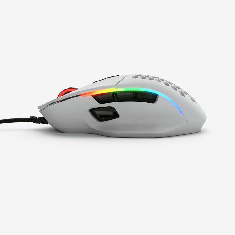 موس Glorious Model I Matte White از RGB پشتیبانی میکند. پشتیبانی از RGB و وجود نور رنگی در کنارههای ماوس و تلفیق آن با طراحی لانهزنبوریاش، باعث شده که این ماوس جلوهای جذاب و چشمگیر داشته باشد.