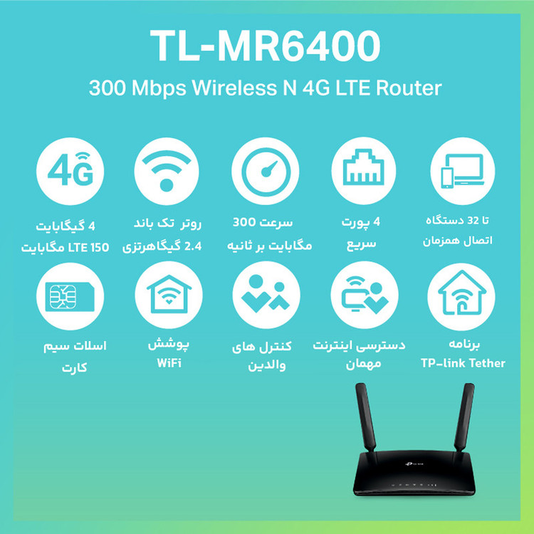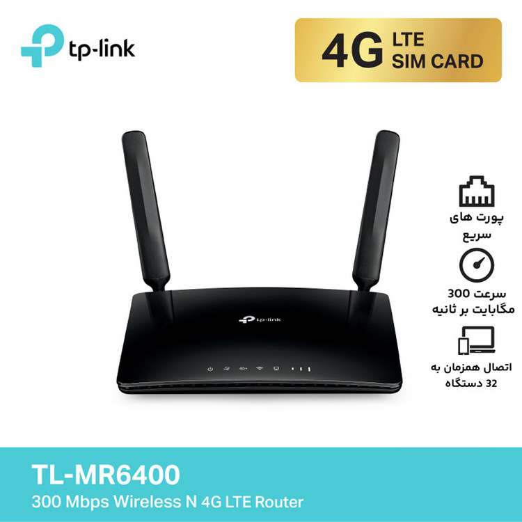 مودم روتر 4G LTE بی سیم N300 تی پی-لینک مدل TL-MR6400