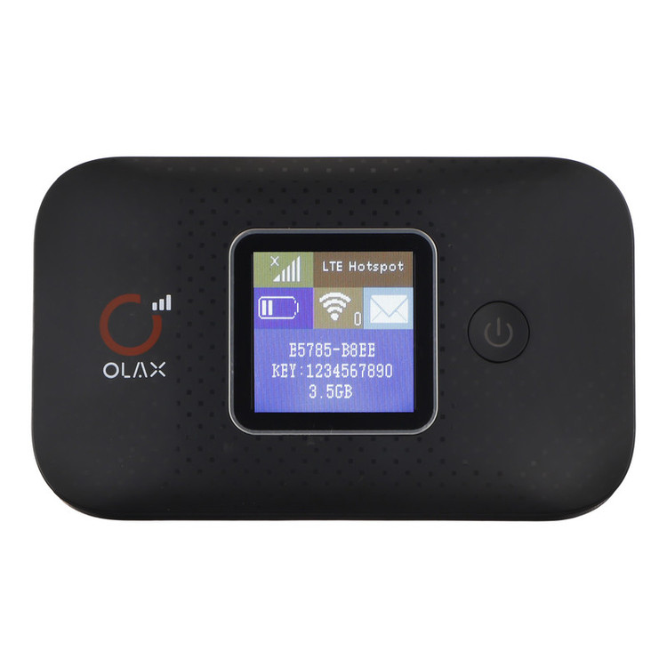 مودم OLAX E5785 یک مودم همراه پرسرعت با کیفیت ساخت بالا بوده که از شبکه 4G و 3G پشتیبانی می کند و از پیامک فارسی و کدهای USSD نیز پشتیبانی می کند. برای دسترسی به اینترنت پرسرعت کافیست یک سیمکارت از هر اپراتور موبایل (بجز سیمکارت های TD-LTE که پشتیبانی نمی کند) را داخل مودم قرار داده و بدون هیچ تنظیمات خاصی به اینترنت متصل شوید. مودم E5785 در خانه، محل کار، خودرو و همچنین در مسافرت قابل استفاده بوده و هر کجا که باشید اینترنت پرسرعت و پایداری را برای شما فراهم میکند. E5785 یک مودم کوچک، جمع و جور و سبک با وزن 110 گرم بوده که به راحتی میتوانید آن را درون جیب و یا کیف همراه خود جا داده و در هرکجا با خودتان همراه کنید. در ساخت این مودم از مواد بسیار باکیفیت استفاده شده است. مودم الاکس E5785 مجهز به یک شبکه وای فای قدرتمند است که تا 10 نفر به طور همزمان میتوانند به این شبکه وایرلس متصل شده و از اینترنت پرسرعت استفاده کنند. مودم E5785 ، یک مودم قابل حمل است که دقیقا با باندهای فرکانسی اپراتورهای موبایل ایران هماهنگ شده است که بالاترین سرعت اینترنت را برای شما در ایران ایجاد کند. باتری لیتیومیونی با ظرفیت 3000 میلیآمپرساعت تا 6 ساعت کار بدون نیاز به برق را برای شما فراهم می کند، این باتری جداشونده امکان تعویض باتری بدون نیاز به خدمات پس از فروش را به کاربران می دهد.همچنین این مودم بدون باتری و با تصال مستقیم مودم به آداپتور روشن شده و قابل استفاده می باشد. این مودم با امنیت بیسیم مطابق استانداردهای بین المللی تجهیزات بی سیم و نوع آنتن داخلی ارائه شده است. همچنین با سرعت دانلود تا 150 مگابیت بر ثانیه و آپلود تا 50 مگابیت بر ثانیه، می تواند کاربران را شگفت زده کند و به سرعت بالای اینترنت در مناطق پوشش دهی شده توسط شبکهی 4G-LTE دسترسی داشته باشد. مودم OLAX E5785 با رنگ مشکی و طراحی ویژه و دارای یک نمایشگر رنگی زیبا که نمایش دهنده میزان آنتن دهی، تعداد وای فای متصل، میزان شارژ باتری، اعلان پیامک دریافتی و ... می باشد.