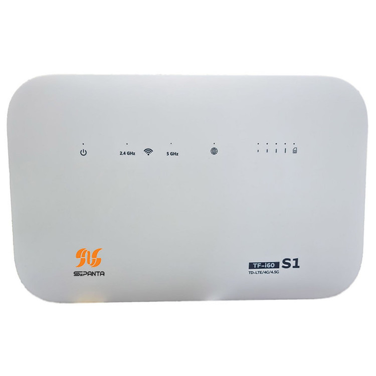 مودم رومیزی TDLTE سپنتا مدل TF-i60 S1 محصولی از شرکت سپنتا (sepanta) است. مودم رومیزی TDLTE سپنتا میتواند از سیمکارتهای TD-LTE در آن بهره گرفت. مودم رومیزی TDLTE سپنتا مدل TF-i60 S1 میتواند از شبکههای نسل 4 و 4.5 تلفن همراه پشتیبانی کند و میتوان از سیمکارتهای TD-LTE در آن بهره گرفت. مودم TF-i60 S1 دارای چهار پورت LAN بوده و تا 32 کاربر میتوانند به صورت همزمان به وایفای ایجادشده توسط مودم سپنتا TF-i60 S1 وصل شوند؛ به این معنی که میتوان برای مصارف اداری و تجاری در شرکتهای کوچک تا متوسط هم از مودم سپنتا TF-i60 S1 استفاده کرد. چهار چراغ LED در قسمت جلویی دستگاه قرار دارد که وضعیت مودم را نمایش میدهد. این مودم فاقد باطری داخلی است و از طریق آداپتور به برق 100 تا 240 ولت شهری متصل میشود. لازم به ذکر است این محصول دارای سرویس اینترنتی 2000 گیگ یکساله و سیمکارت TD-LTE از شرکت سپنتا است.