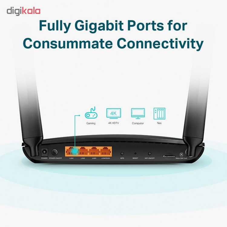 RJ-45 LAN , RJ-45 WAN/LAN , شیار سیم کارت